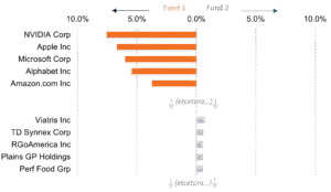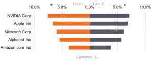 Figure 1: Largest five holdings of two US stock market index tracking funds